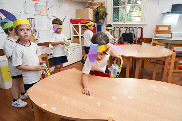 Die Kinder bereiteten sich mit ihren bunten Hasenohren auf das Fest vor und kamen zusammen, um zu tanzen und Lieder rund um diese traditionelle Feier zu singen.